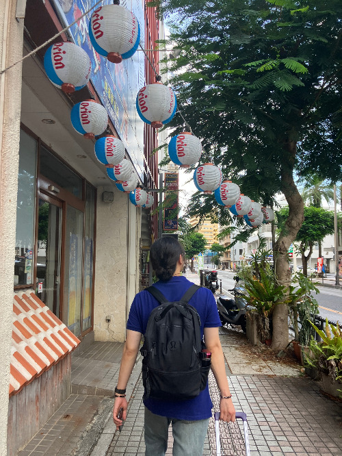 드디어 공항문이 열리고 밟게 된 오키나와의 땅은 습한 공기만큼이나 뜨겁고 끈적거렸다. 8월에는 돈을 주고 가라고 해도 오키나와에 가지 않는다는 우스갯소리가 있다고 들었다. 7월인데도 날씨가 후덥지근하여 동남아에 온 것은 아닌가 싶었다. 그도 그럴 것이 공항과 길거리에서 흔히 볼 수 있는 게 야자수 나무다.