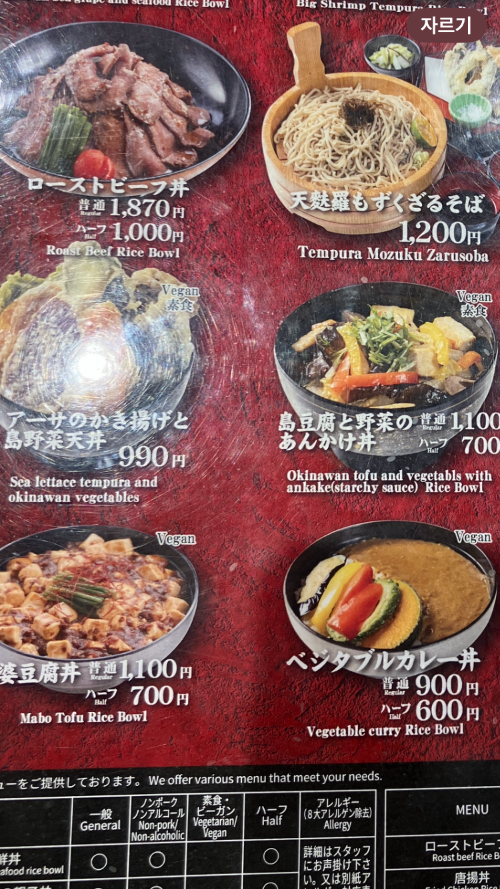 일본은 우리보다 변화하는 속도가 늦다고 들었다. 장인 정신도 발달한 곳이고, 우리처럼 빨리빨리 문화도 아닌 것으로 알고 있다. 그런데 정작 대한민국의 대표 국제공항인 인천공항은 다양한 국적의 사람들이 모이는 곳인데도 '비건 식당' 하나가 없다. 하다 못해 '비건'이라고 적힌 메뉴를 본 적이 없다. 그런데 기대도 안 한 일본에서 비건 메뉴를 이렇게 많이 파는 곳이 있다는 게 사뭇 반가웠고, 또 감사했다. 아리가또!