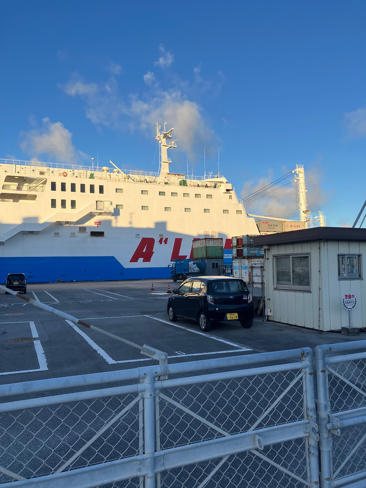 오키나와에서의 첫날밤이 지나고 드디어 다음 날이 밝았다. 한국에서는 그렇게나 아침에 일어나기가 힘이 드는데도(이 글을 쓰는 지금도 그렇다) 여기에선 귀신 같이 눈이 떠졌다. 오전 7시 출항이었는데 티켓 예매를 출국 전에 미리 해두었기 때문에 6시 30분 정도에 항구에 도착했다. 탑승과 관련된 사전 안내 사항에서도 특별한 내용은 없었기 때문에 편안한 마음으로 갔다. 우리가 탑승할 페리가 보였다. 생각해 보면 12살 때 처음 일본을 갈 때에도 비행기가 아니라 부산항에서 배를 타고 갔었다.