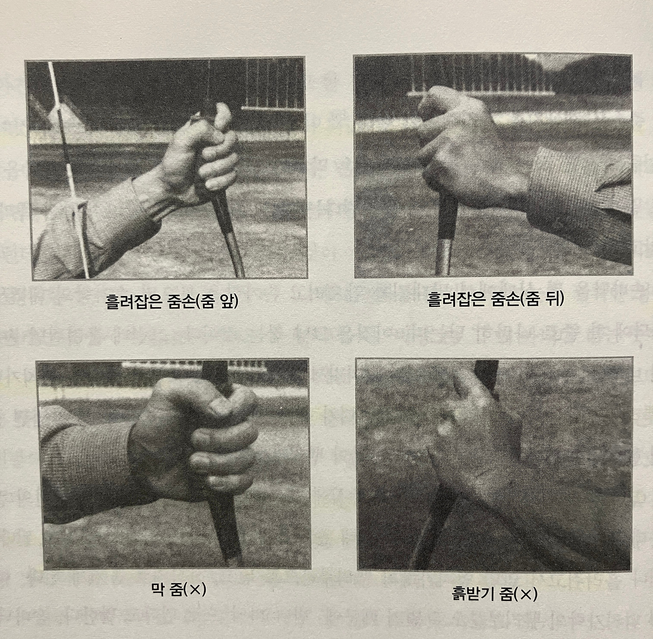 - 줌손이 꺾이면 등힘도 쓸 수가 없고 활시위에 팔이 맞기 쉽다.