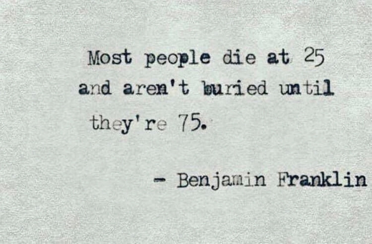 그러니 이런 우리네의 삶을 두고 벤자민 프랭클린은, 아직 땅에 묻히지 않았을 뿐, 죽었다고 밖에 달리 더 표현할 방법이 없다고 여겼을 것이다.