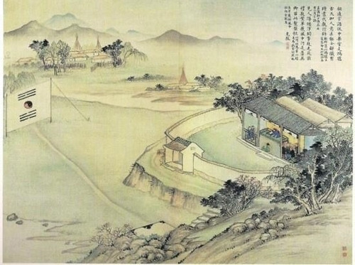 예전에 쓰였던 전통 과녁은 지금처럼 규격화된 단 하나의 형식이 있었던 건 아니다. 김홍도의 <북일영>이라는 그림이나 중국의 사신 이극돈이 그린 <봉사도>에는 주역(周易)의 괘가 그려져 있다. 위에서 살펴본 탐라순력도에 등장하는 솔포(천을 매달아 만든 과녁) 과녁에도 괘가 그려진 것을 볼 수 있다. 이는 어떤 의미가 있을까?
