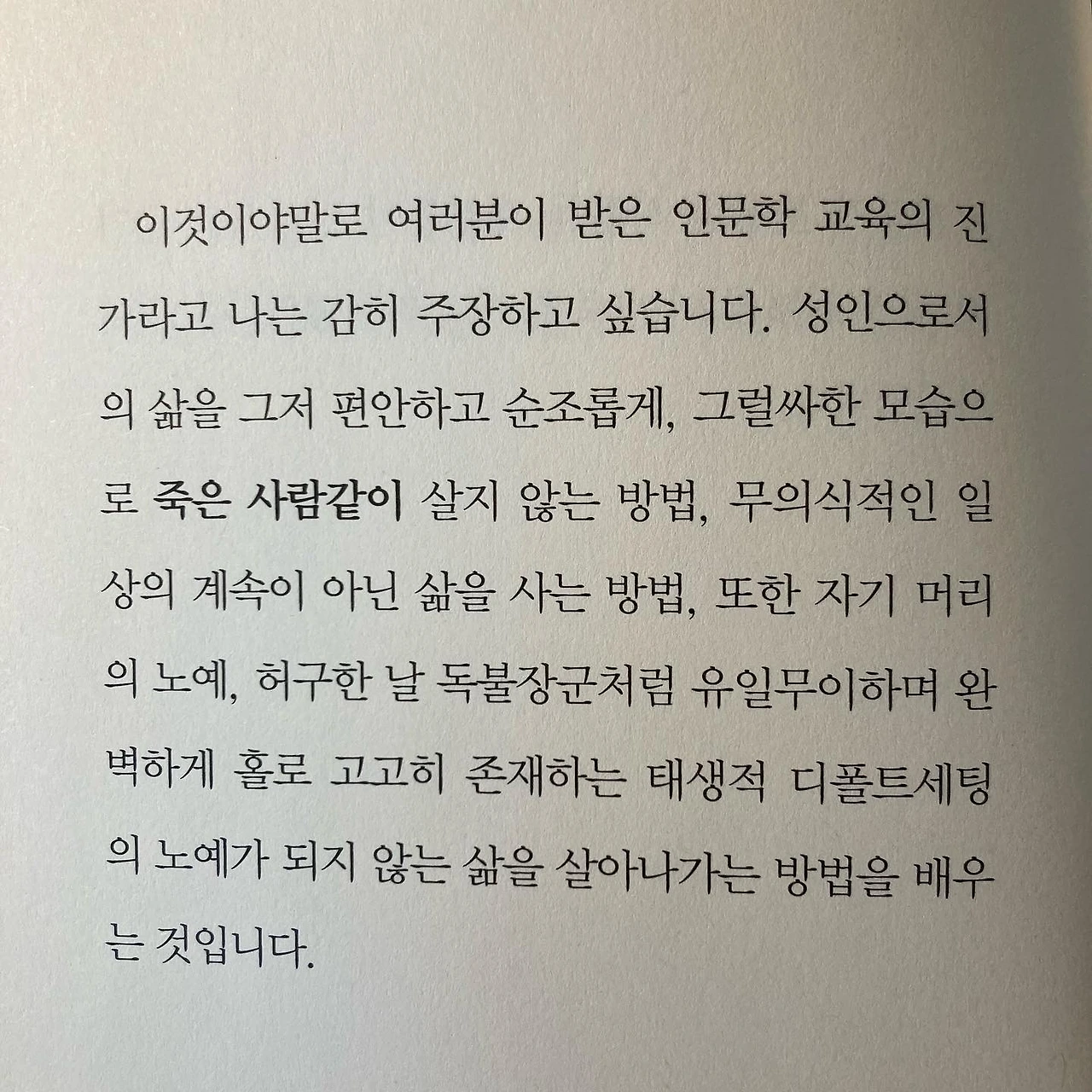 인간은 이기적이면서 이타적이고, 단순하면서도 복합적인 존재라는 것을 알고, 일면만을 보고 판단하지 않는 것.