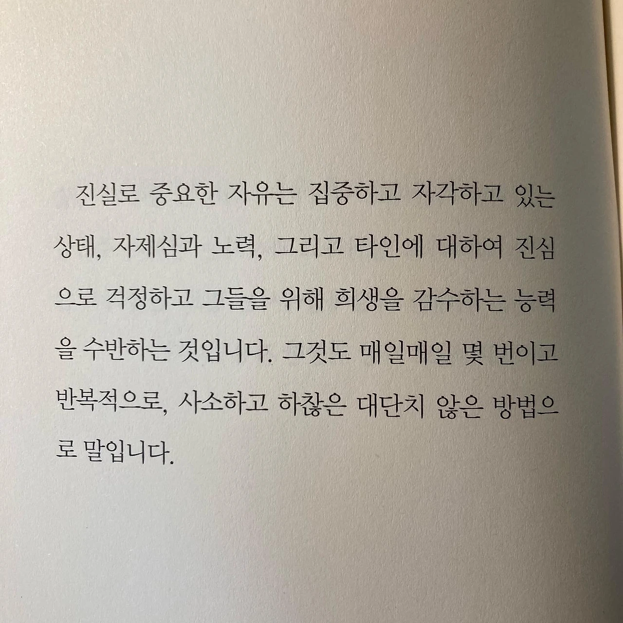 이 모든 일련의 내용들을 결과가 아닌 목표로 삼고 언제나 그 과정의 길 위에 있음을 아는 것.