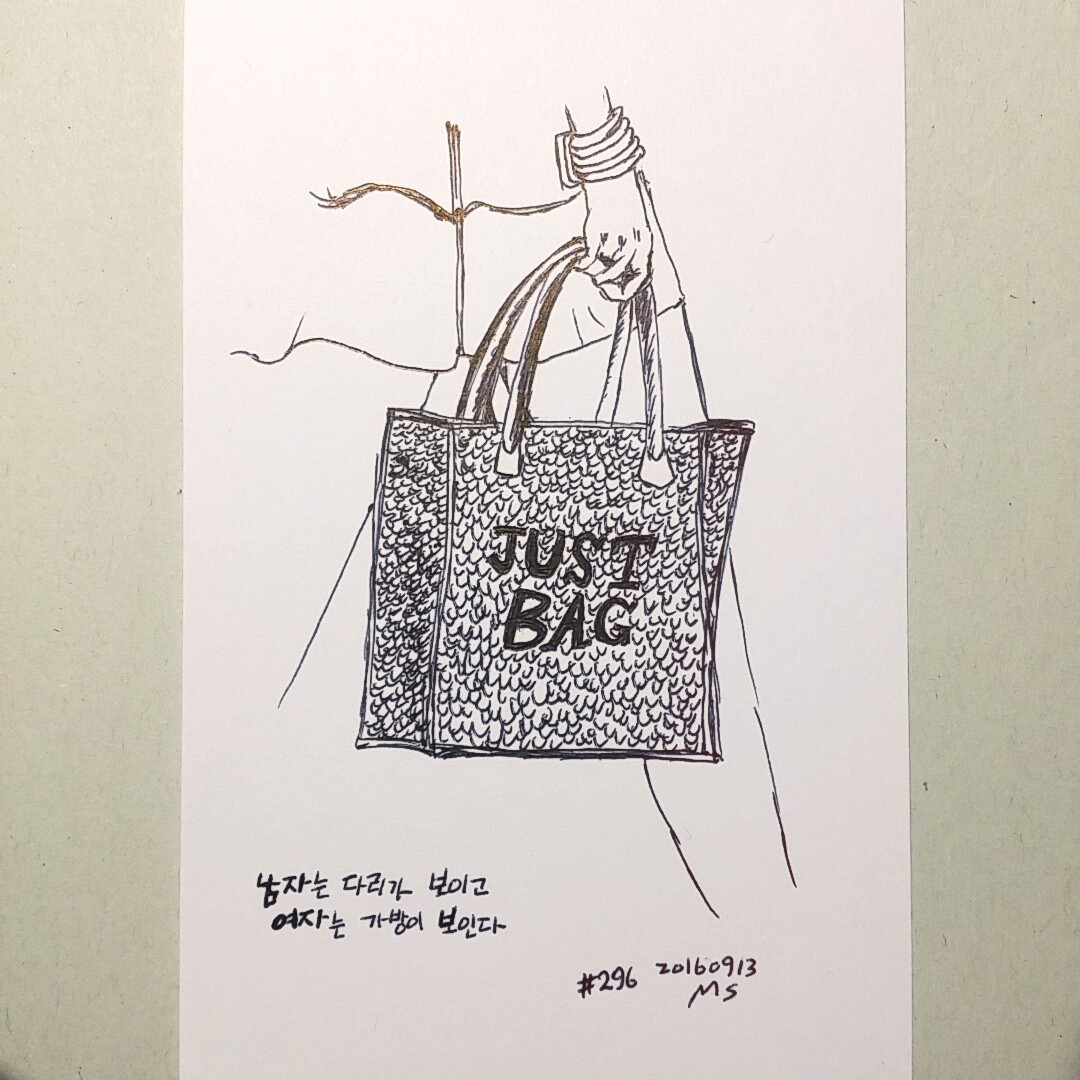 가방을 든 모습에아마 처음엔 가방이 보였을 것이다.그리고 금새남자는 다리가 보이고여자는 가방도 보인다.#poetry