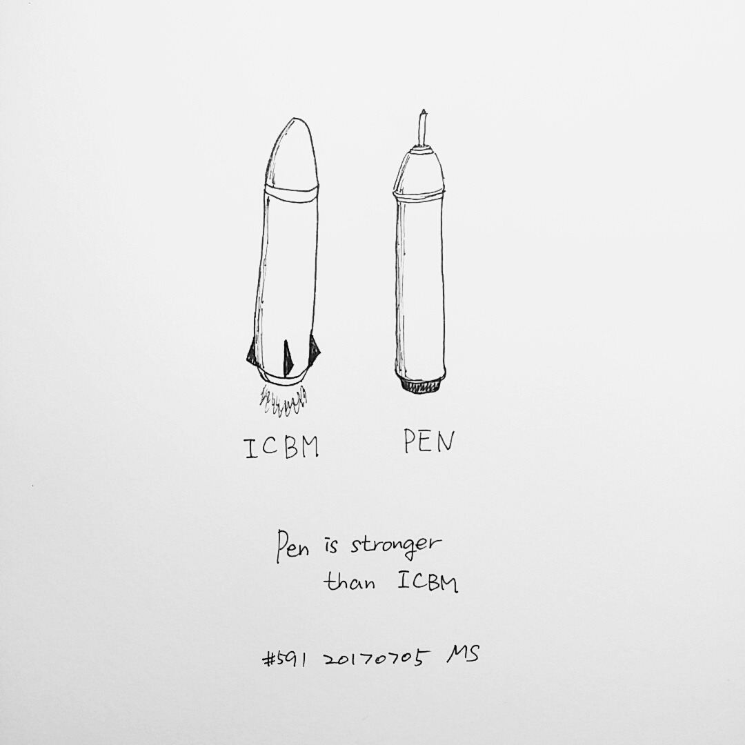 펜을 보고 뉴스를 보니 펜이랑 미사일이랑 닮았다.