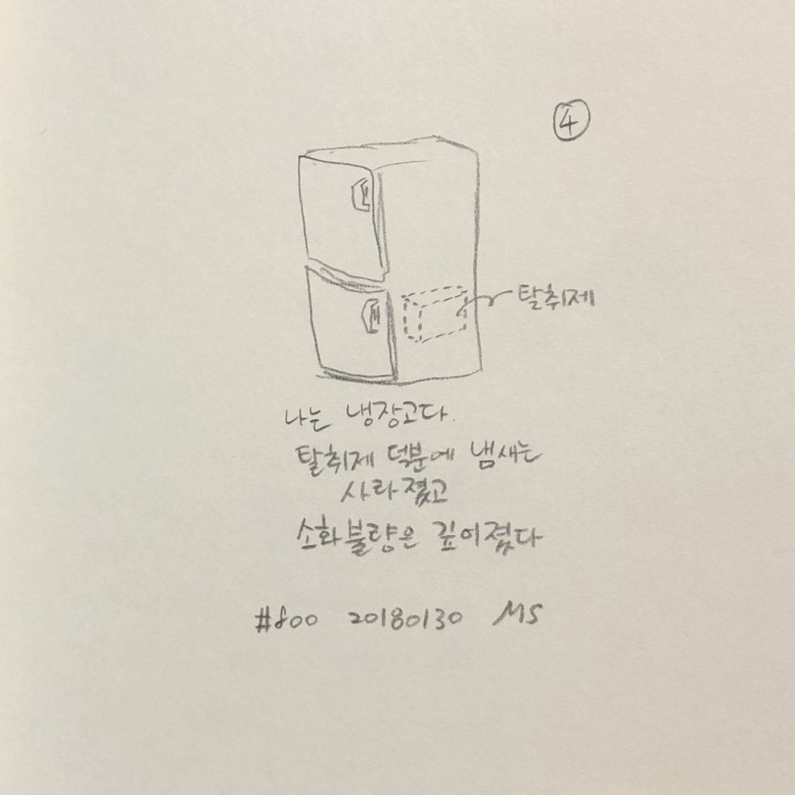 냉장고 4_냄새가 나는데, 사람들이 음식을 안꺼냈다.대신, 음식이 아닌 무언가를 내 속에 넣어놨다.그러고 나니, 냄새가 조금 줄어드는 느낌이다.아, 이러면 안되는데...사람들이 내 속에 넣어둔 건 냉장고 탈취제다.냄새가 안나게 되면, 나는 어떻게 이야기를 해야 할까?머리가 아프다._to be continued._#fiction #픽션