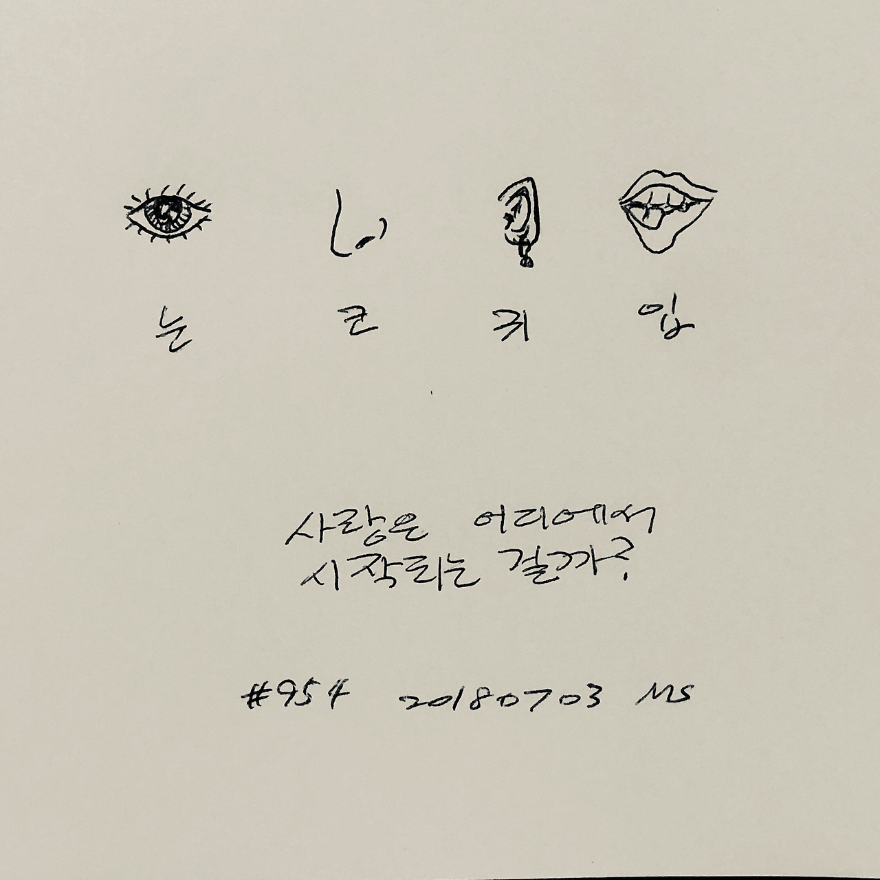 눈, 코, 귀, 입 사랑은 어디에서 시작되는 걸까?그리고어디에서끝나는 걸까?사랑은 호르몬의 작용이고 호르몬은 아미노산 덩어리이니 실험실의 주사 바늘로도 사랑을 만들어 낼 수 있을까? 차가워진 마음을 실험실의 주사 바늘로살려낼 수 있을까?#poetry #시