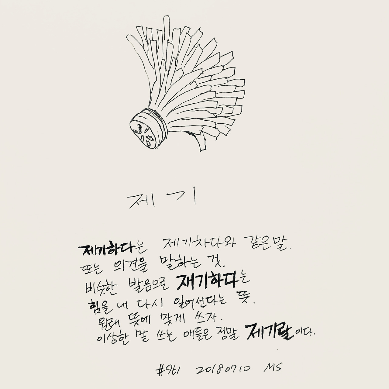 제기하다는 제기차다와 같은 말이다. 또는 의견을 말하는 것을 뜻한다. 비슷한 발음의 재기하다는 힘을 내 다시 일어선다는 뜻이다. 말을 원래 뜻에 맞게 쓰자.이상한 말 쓰는 애들은 정말 제기랄이다. #essay #에세이