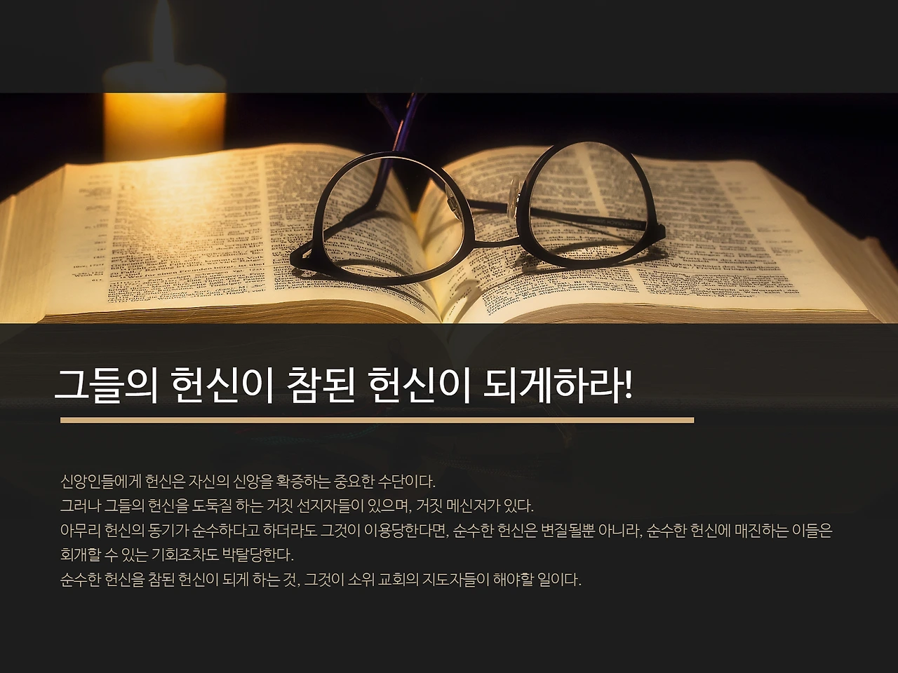 # 순수한 마음으로 헌신하는 이들의 헌신이 악한 것이 되지 않게 하라!