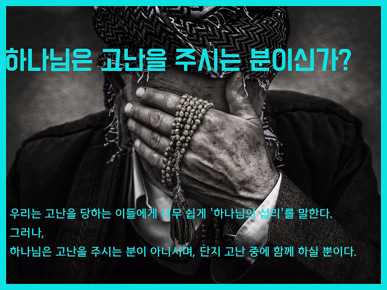 그동안 기독교는 성경을 오해했다. 그리고 이 오해는 어쩌면 지속하겠지만, 분명한 사실은 하나님은 ‘고난’을 주시는 분이 아니시며, 고난 중에 함께 하시는 분이실 뿐이시다.