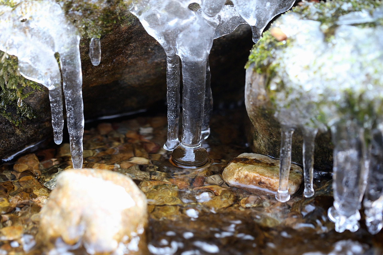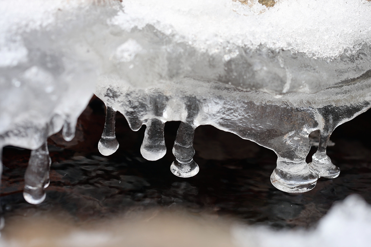 말발굽을 닮은 고드름, 봄을 향해 달려가는 준마의 말굽 같기도 하고 겨울과 봄 사이를 이어주는 전령사 같기도 하다.