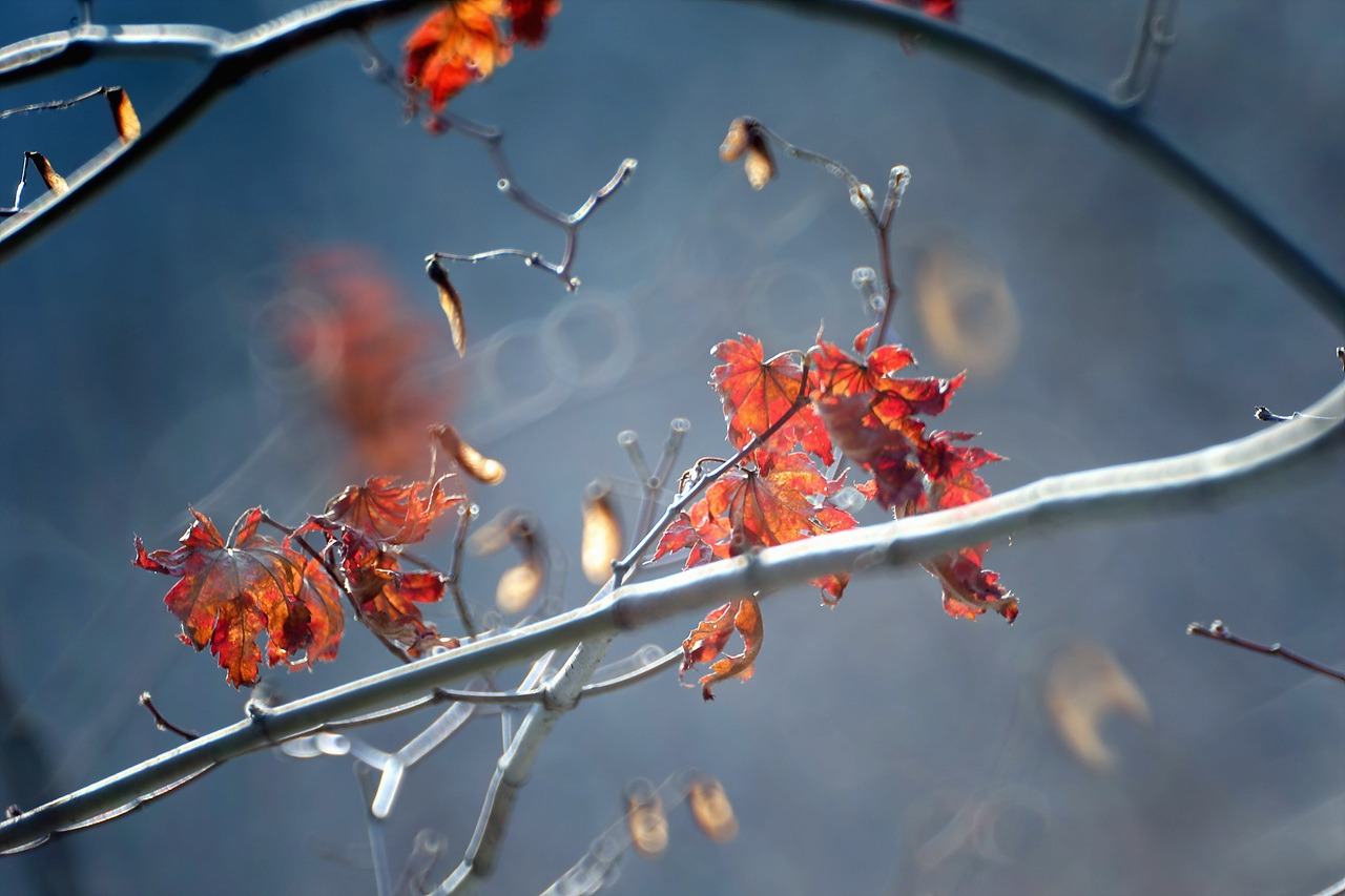 지난가을, 차마 떨구지 못한 나뭇잎들이 여전히 남아있다.