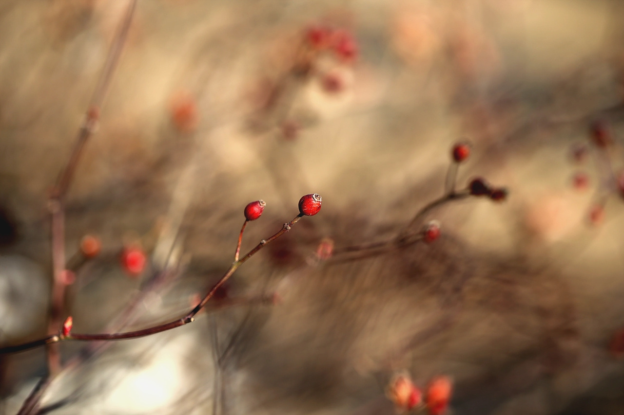지난겨울을 보낸 찔레 열매가 아직 붉은 가운데 찔레나무 줄기도 물을 잔뜩 먹고 새순을 피워낼 준비를 하고 있다.