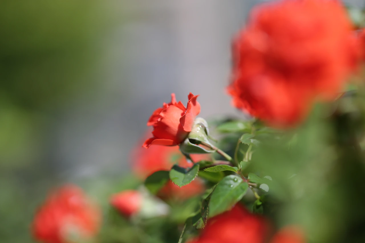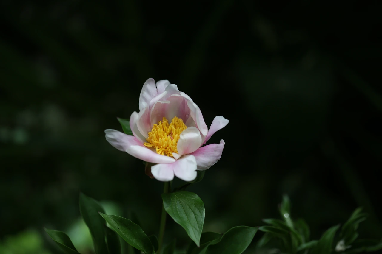 이른 봄, 싹을 낸 목단에 작은 꽃망울이 맺혔다.