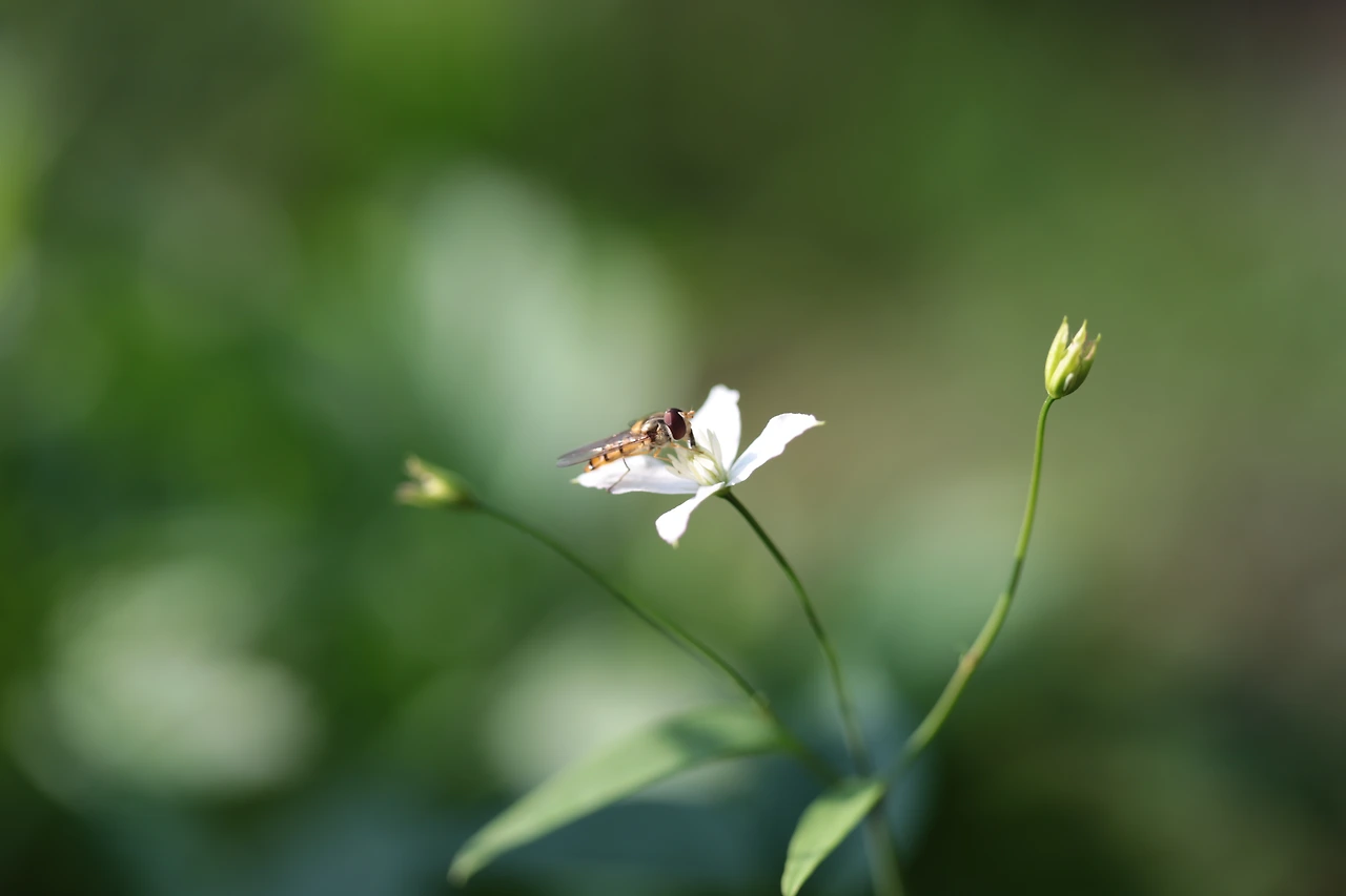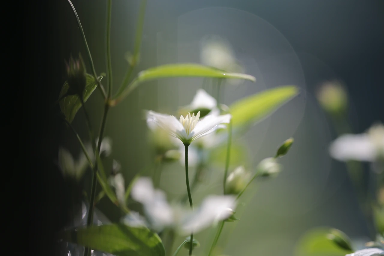 봄에서 여름으로 이어지는 계절에 마치 하얀 눈이 초록의 이파리에 점점이 내린 듯 으아리는 피어난다.