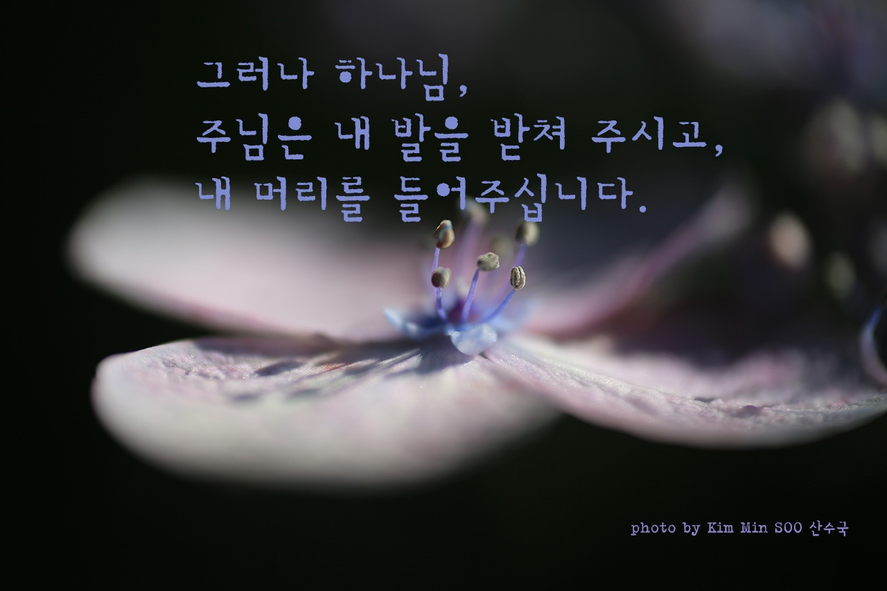 그러나 하나님, 주님의 나의 사방에 방패를 두르시고, 네 발을 받쳐 주시고, 내 머리를 들어주십니다.