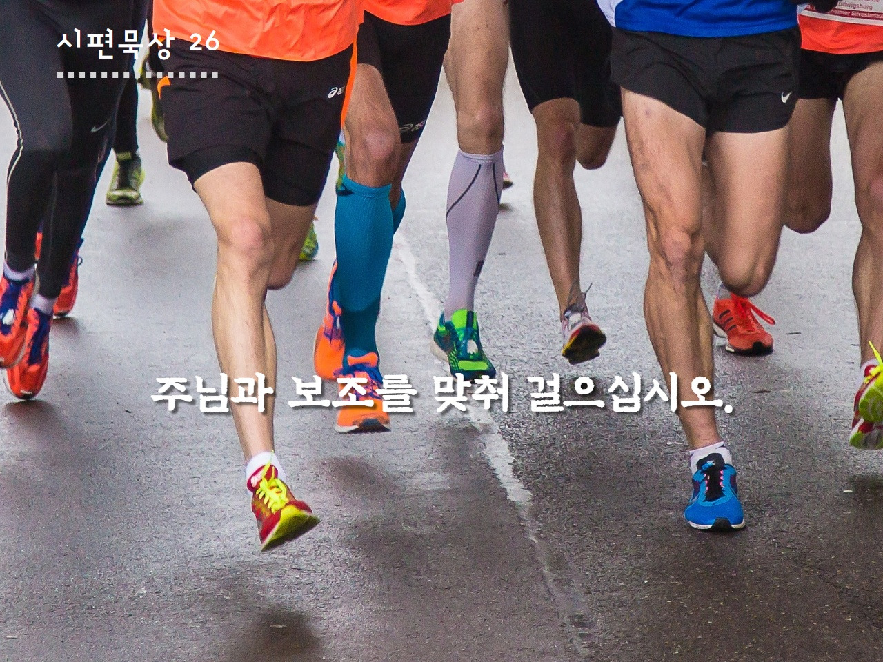 혼자 걷는 것보다 늦을지라도, 불편할지라도 한 걸음 한 걸음 보조를 맞춰 걸어가야만 된다.