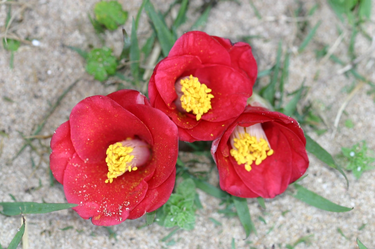 동백꽃이 피었다는 소식은 들려오는데 아직 낙화한 동백의 절경 소식은 미미하다.