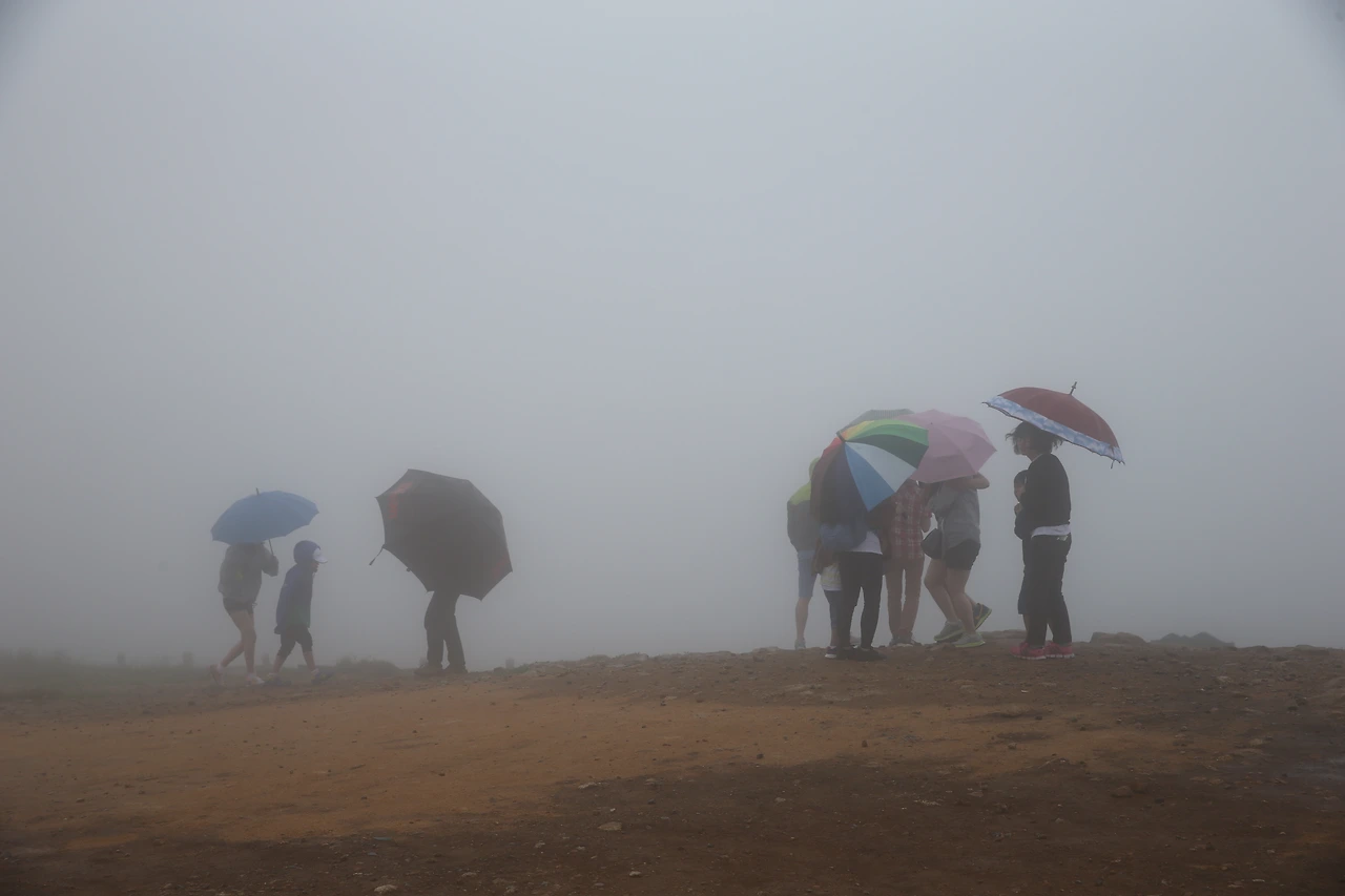 그곳에 서자 내리는 비에 운무가 더해지면서 시야가 흐려졌다.
