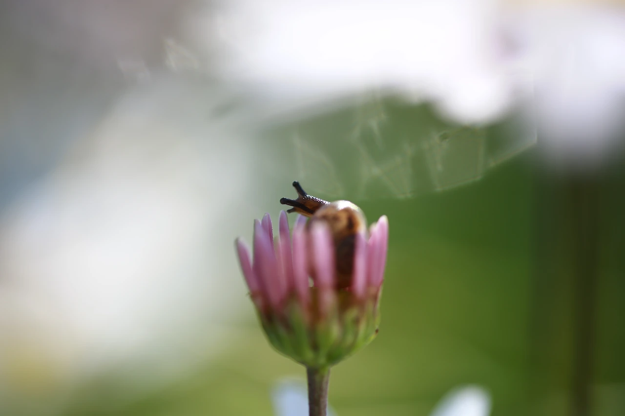 달팽이 한 마리가 구절초에 앉아 아침산책을 하고 있었다.