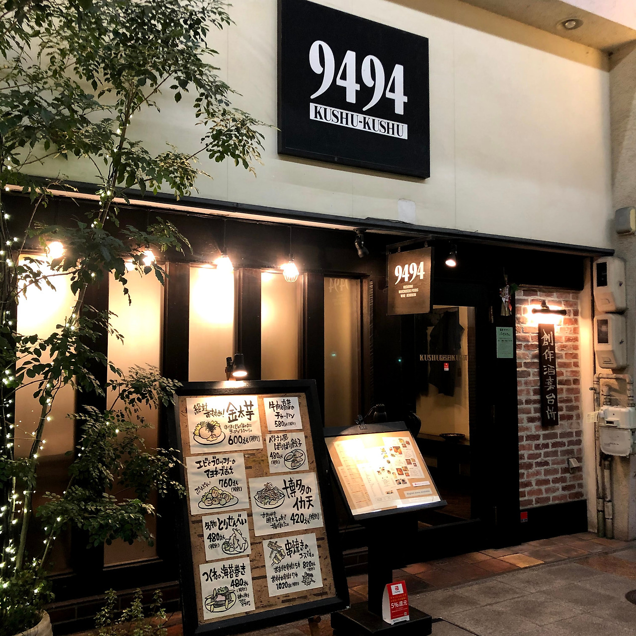 구라시키 역에 도착하면 역이 2층에 있기 때문에 내려가기가 불편하다. 그래서 옆에 있는 백화점에 들어가 엘리베이터를 이용했다. 그렇게 꼼수를 써서 얼마 걷지 않았더니 곧 숙소가 나왔다. "요야꾸시딴데스께도.." 하지만 대답은 "한국 분이세요?"였다. 너무 좋다. 프런트에 계시던 두 분이 모두 한국사람이었다. 이곳은 2박에 2인 트윈베드 거기다 조식까지 포함했는데 말도 안 되는 금액 22000엔으로 예약한 곳이었다. 저렴한 가격에 한국인 직원들의 친절한 응대까지. 대욕탕이 라돈탕인 것만 빼고 완벽한 숙소였다. 4시부터 일어나서 하루 종일 몸을 혹사시켰기에 그대로 소파에 누워 잠이 들었다. 1시간 정도 잔 것 같다. 저녁을 먹기 위해 피곤한 눈을 비비며 일어났다. 호텔 직원이 추천 맛집 지도를 주셨지만 알아보기가 어려워 구글맵에서 이자카야를 검색했다. 이자카야는 잘못 선택하면 굉장히 비싼 곳일 수 있기 때문에 가격대를 잘 보고 가야 한다. 구라시키 상점가에 위치한 9494라는 식당을 발견했는데 입구에 나와있는 메뉴판이 도움이 되었다.