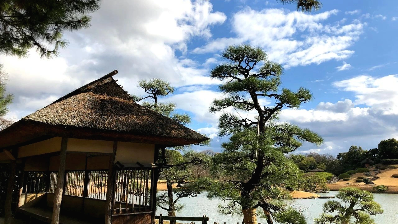 커다란 인공호수를 끼고돌고 있는데 돌연 비바람이 쳤다. 일기예보에는 없던 비라 우산도 없는 상황이었다. 마침 호수 중앙에 독특한 분위기를 풍기는 찻집 오너를 보고 있었는데 그분과 눈을 마주쳐 버려서 겸사겸사 그 찻집으로 들어갔다. 주인으로 보이는 그분은 태극권을 할 때 입을 것 같은 도복 모양이지만 재질은 최고급 실크인 듯 보이는 페르시안 블루 색의 옷을 입고 있었다. 찻집도 단 한 칸으로 한 번에 한 팀밖에 들어오지 못했다. 건물 자체가 그렇게 작았다. 안에 들어가 자리를 잡으니 원하는 다기를 고르라고 하신다. 하나씩 찻잔을 고르자 그 다기에 마차를 만들어서 가져다주셨다. 차와 함께 키비 당고(수수 당고)를 내어주셨다. 고라쿠엔의 사진집도 함께 건네주셨는데 사진을 보고 있는 와중에 비바람 때문에 한지를 바른 나무문이 덜컹거리며 시끄러운 소리를 냈다. 전혀 집중할 수 없었다. 날이 좋았을 때 왔으면 문을 열어두고 밖의 풍경을 감상하며 여유롭게 차를 마셨겠지.. 아쉬움이 남았다. 돌아갈 때 쯔음 작은 개구리모양 도자기 인형을 주셨는데 지갑에 넣고 다니면 돈이 돌아온다고 한다. 개구리(카에루)와 돌아오다(카에루)가 같은 발음이기 때문이라고 한다. 이런 어이없는 미신이 좀 귀엽다고 생각했다.