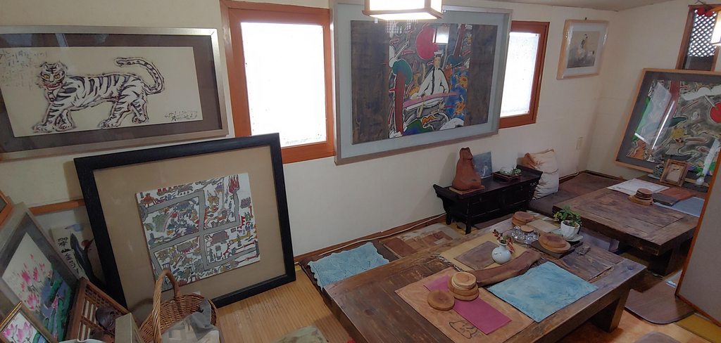 보시다시피 분위기가 독특한 곳. 경주라는 곳도 그렇고, 대릉원 앞이라 운치가 더하죠. 그에 정말 잘 어울리는 장소. 각종 그림이나 독특한 소품이 많아요. 영화에 나왔던 그 춘화도 있고.