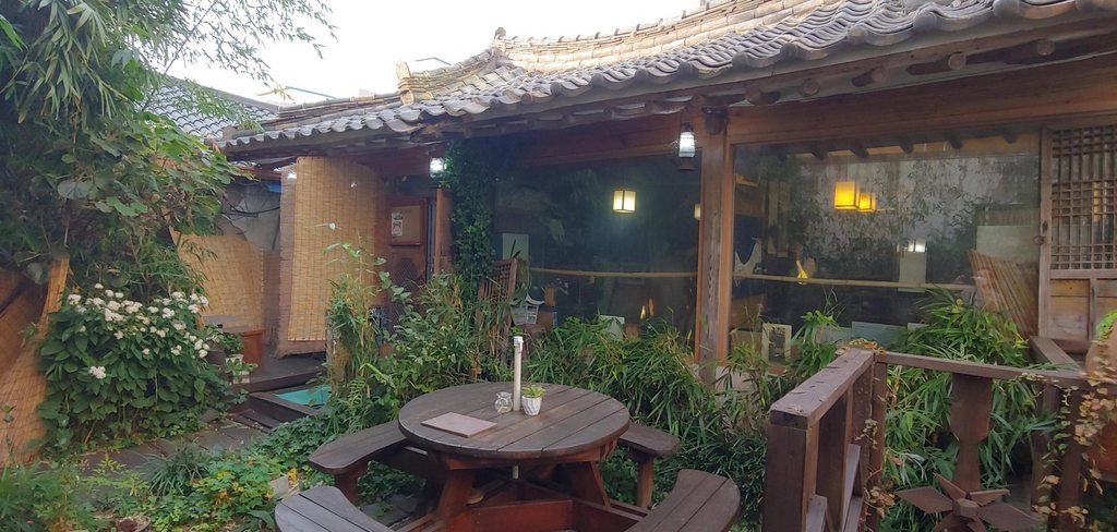 입구들어서면 나오는 정원쪽. 테이블이 있으나 실제로 여기서 누군가 차마시는 모습을 본적은 없다