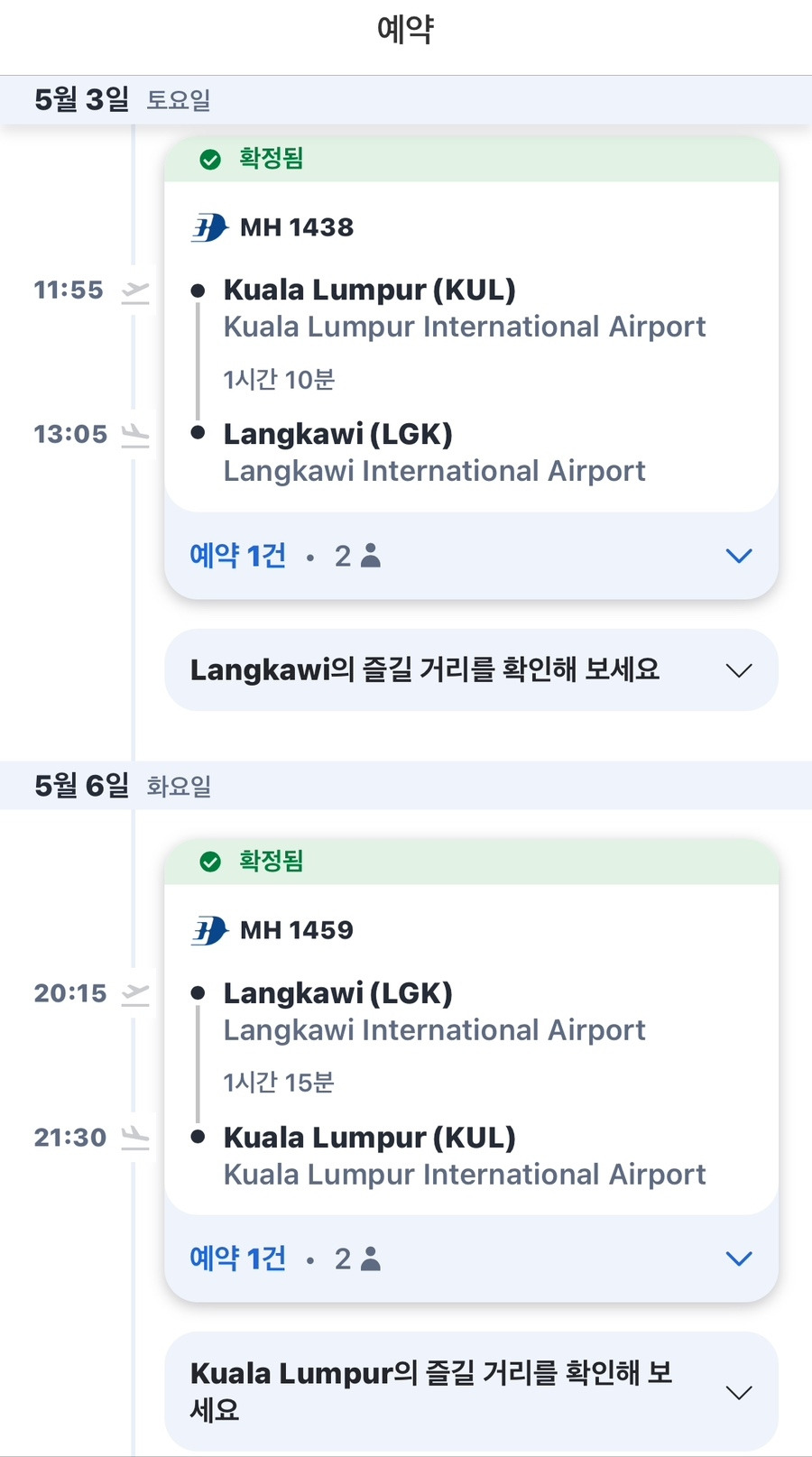 쿠알라 룸푸르에서 랑카위는 (4월 24일 기준) 스카이 스캐너 검색해 보니 Air Asia와 Batik Air 같은 저가항공사를 통해 왕복 7만 원대로 부담 없이 다녀올 수 있습니다.