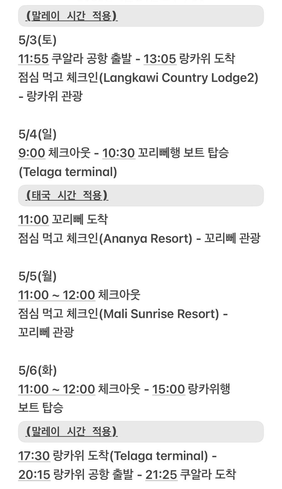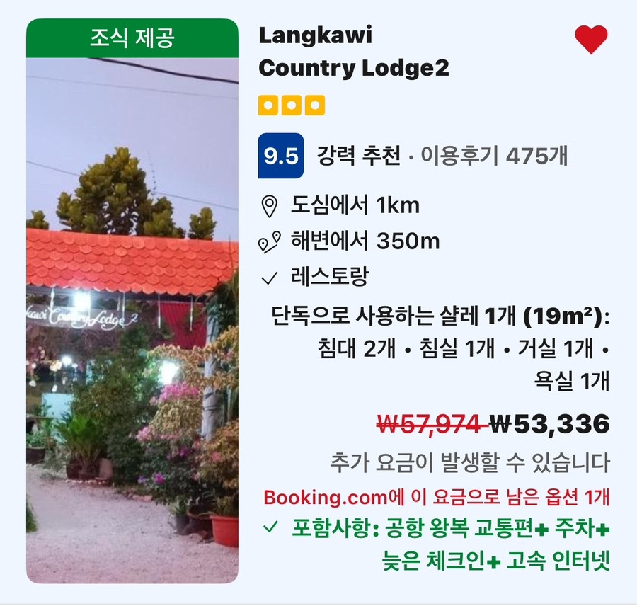 다음은 랑카위, 꼬리뻬 숙소 정보입니다.