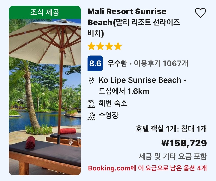 이어서 둘째 날 숙소는 동쪽 해변인 선라이즈 비치에 위치한 Mail Resort Sunrise Beach로 예약했습니다.
