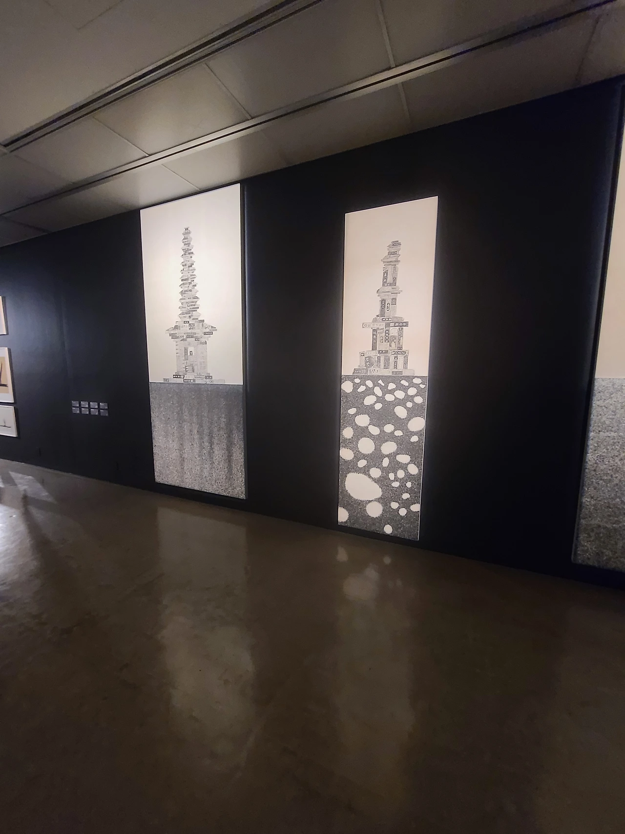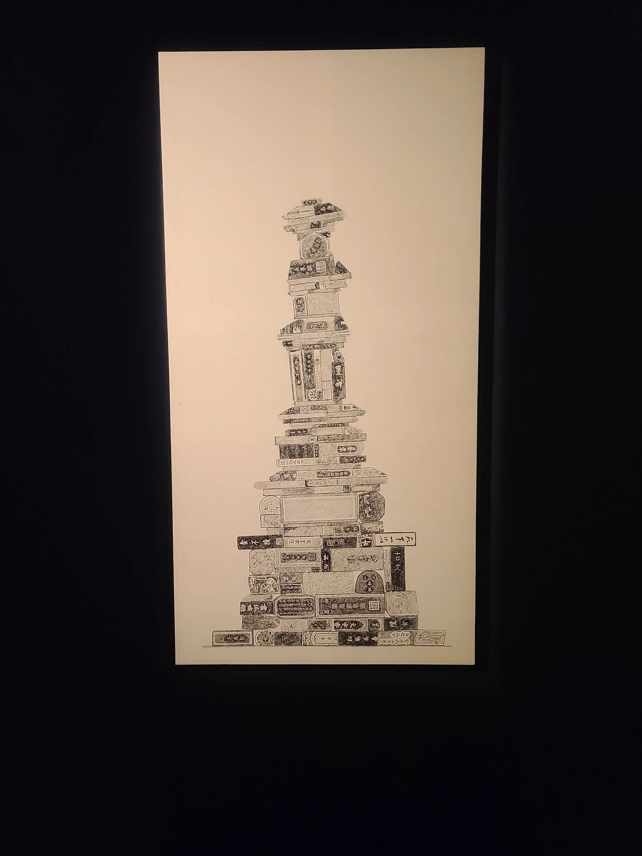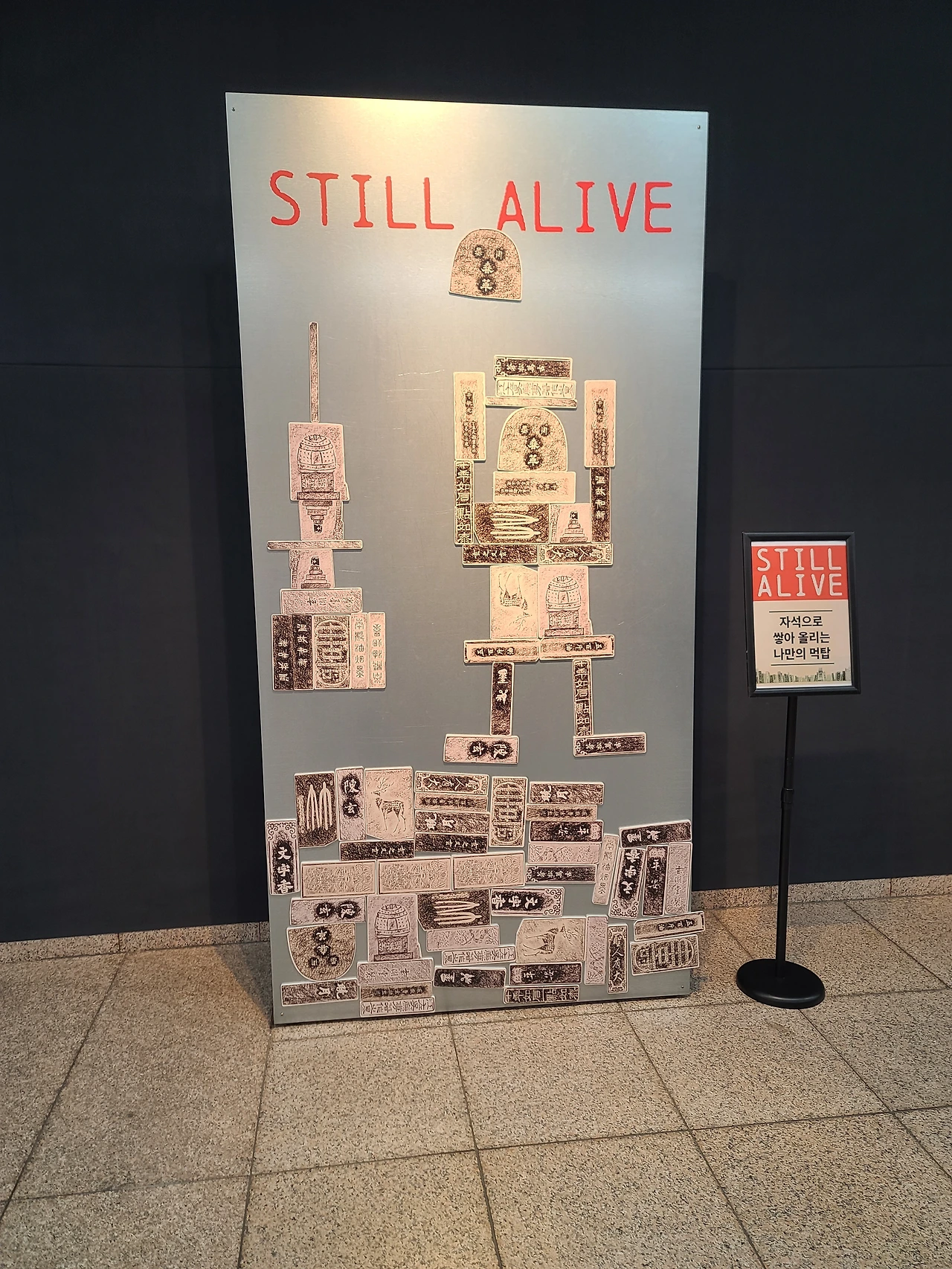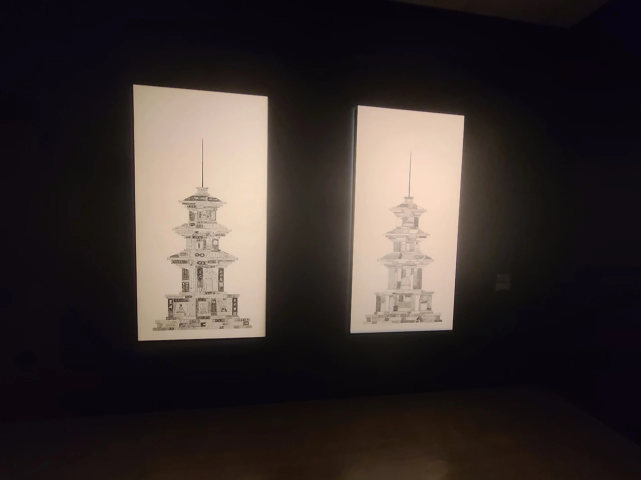 사실 사진으로만 봤을 땐 먹탑이라는 작품이 잘 이해가 가지 않았는데 작품 설명과 만드는 과정, 영상을 보니 이해가 갔다. 그리고 붓으로 그린 게 아니라 실제 사용하는 먹의 본을 떠서 탑을 쌓아올리는 거였다. 뭔가 진짜 손으로 직접 돌을 하나하나 쌓아올려 정성스레 탑을 짓는 것 같은 웅장한 느낌이 들었다.