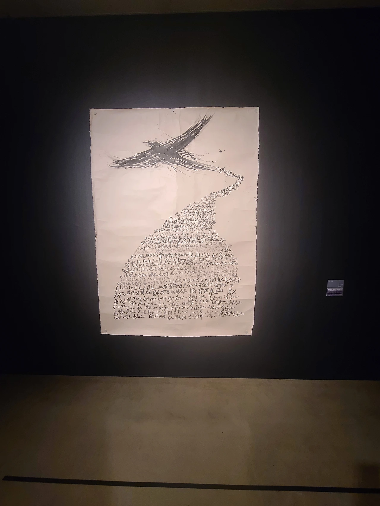 소개를 읽어보니 먹과 종이, 서예라는 전통적인 매체를 현대적이고 실험적인 방식으로 재해석하는 작가분이었다. 사실 나는 서예에 대해 잘 모른다. 옛날에는 서예도 그림처럼 작품으로 여겼고, 글자의 획이나 필치 같은 게 중요했다더라 하는 정도의 지식이 전부였다. 잘 몰라서, 보고 아무것도 느끼지 못할까봐. 내 무지와 부족함을 직시하는 게 두려워서 좀 주춤하게 되긴 했다.