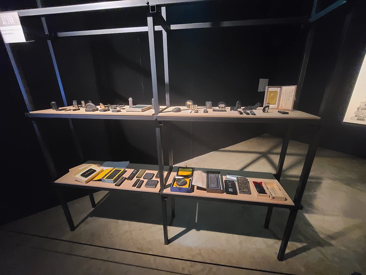 전시장 한켠에는 작가분이 실제로 사용하는 먹들이 전시되어 있었다. 먹이 그렇게 다양한 모양이 있는지 몰랐는데 신기했다. 먹 자체만도 하나하나 섬세한 작품 같았다.
