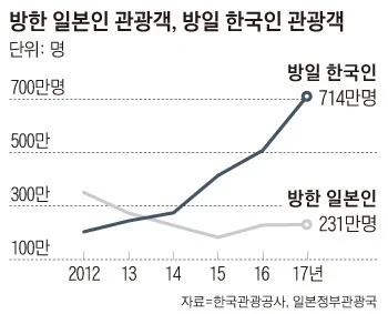 특히 이들이 가장 많이 방문한 국가는 일본이다. 2015년 관광에 대한 연차보고서를 보면, 중국 방문객이 전년대비 6.3% 증가한 약 444만 명으로 가장 많았으나, 일본 방문객이 약 400만 명으로 전년대비 45.2%의 성장률을 보이며 크게 증가하였음을 알 수 있다. 불매운동이 확산되기 전까지 일본을 향하는 방문객 수는 꾸준히 증가하였다. 방일 한국인 관광객이 급증한 배경에는 특히 비용이 저렴해졌다는 점이 크게 작용했다. 2010년을 전후로 등장한 LCC들은 아베노믹스로 인한 엔저효과에 편승해 일본 노선을 중심으로 경쟁적으로 공급을 늘려왔다. 특히 서울과 부산에 한정되었던 출발지를 지방의 공항들로 확장시키고 방일 관광객을 유치하던 일본 정부의 기조와 친화력을 가지면서 일본의 지방공항으로의 취항을 강화했다. 가령 청주 공항에서 도쿄나 오사카로 가는 편이 신규로 생겼다. LCC 입장에서도 비교적 비행거리도 짧고 취항도 자유로워 수요만 충분하다면 수익성을 내기 쉬운 구조라는게 일본행 항공편의 증대에 긍정적인 작용을 했다.
