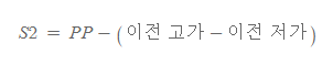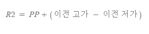 피봇 포인트와 관련된 지지 및 저항 수준은 아래 공식으로 계산합니다.