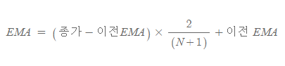 ◼ 지수 이동평균(EMA, Exponential Moving Average)