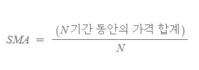 ◼ 단순 이동평균(SMA, Simple Moving Average)