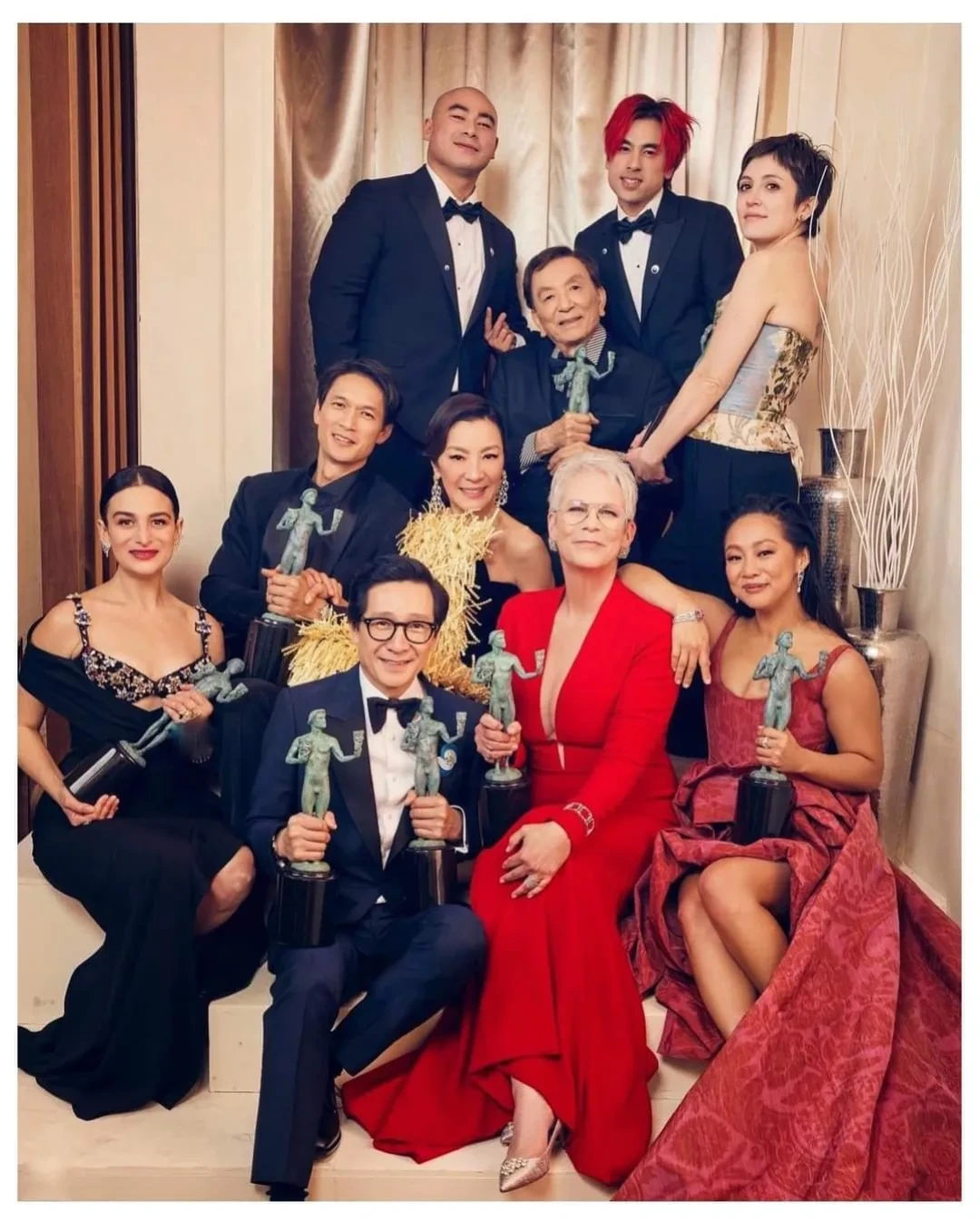 아카데미시상식의 전초전 중 하나라고 하기엔 그 영향력과 권위가 어마무지한 sag award(미국 배우 조합상) 2023에서 에브리씽 에브리웨어 올 앳 원스(이하 EEAAO)의 배우들이 수상을 휩쓸고 있습니다. 여우주연상 양자경, 여우조연상 제이미 리 커티스, 남우조연상 키 호이 콴(아시아계 최초수상) 그리고 마지막으로 앙상블 부문까지 남우주연상을 제외한 큰 상은 모두 독차지했다고 보아도 무관할 것 같습니다. 그리고 3월 12일 오스카의 결과에도 이는 꽤나 영향을 끼칠 거라 예측됩니다.