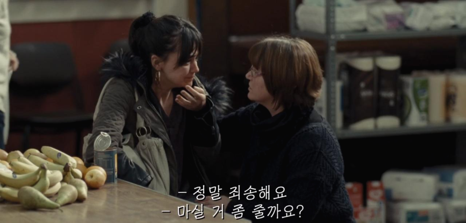 우연히 만난 두 이웃사촌의 연대는 서로 도움을 주고받으며 더욱 끈끈해져 갑니다. 어느 밤, 가정을 지키려다 지친 케이티에게 다니엘은 "우리에게도 잠시 기대어 쉴 바람이 필요하지."라고 위로해줍니다. 그 말을 듣자 이전 날의 고통을 이해하는 이가 있다는 사실에 눈시울을 붉히는 케이티. 그녀에게 잠시 기대어 쉴 바람이란 다니엘이 아니었나 싶습니다. 생리대 살 돈이 없어 비참한 감정에 휩싸여도, 사람들 앞에서 통조림을 따 먹을 정도로 굶주려도 곁에서 지켜준 건 정 많은 이웃사촌 다니엘이었기 때문이죠. 정작 본인은 수당 지급을 거절 당해 모든 걸 팔 지언정, 인간의 정을 져버리지 않은 다니엘의 모습에서 조건 없는 사랑을 엿볼 수 있었습니다.