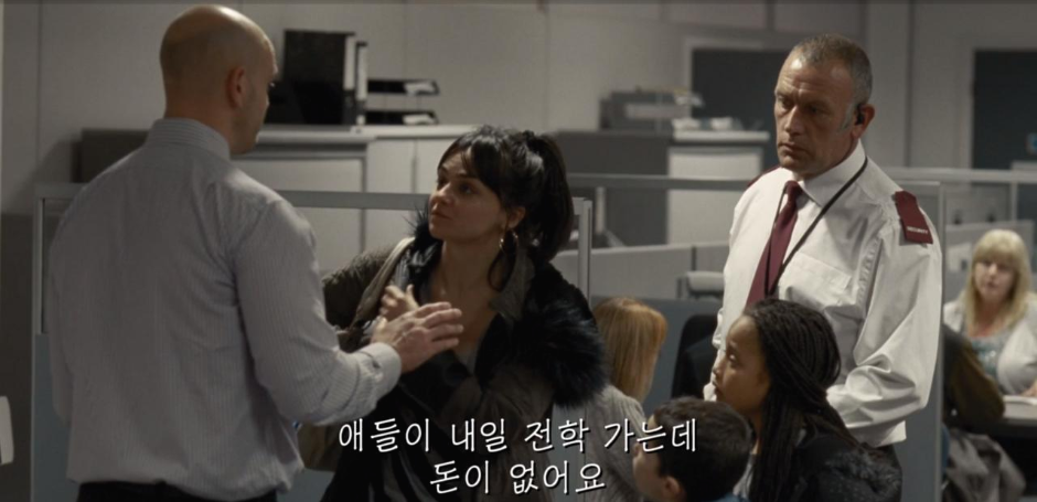 영화 속에서나 현실에서나 우리를 비참하게 만드는 건 서류와 절차를 들먹이는 인간미라곤 찾아볼 수 없는 일처리입니다. '레드 테이프'라는 말을 들어본 적 있으신가요? 관청식의 번거로운 형식주의/문서주의를 꼬집는 용어인데요, 작품 속에 그 모습이 잘 녹아있습니다. 컴퓨터라곤 만져본 적 없는 다니엘이 수당 신청을 위해 질문을 해도 돌아오는 건 최소한의 도움입니다. 그를 도와주는 직원을 발견한 상사는 '잘못된 선례'를 남기면 안 된다고 말하며 나무랍니다. '공짜로 돈 받는데 이 정도는 해야지?'라고 말하는 듯한 위압적인 일자리 알선 직원의 눈빛이나 사정도 듣지 않고 시간에 늦었다는 이유로 내쫓는 태도 모두 인간적인 대우를 받고 있다는 느낌을 주지 못합니다.