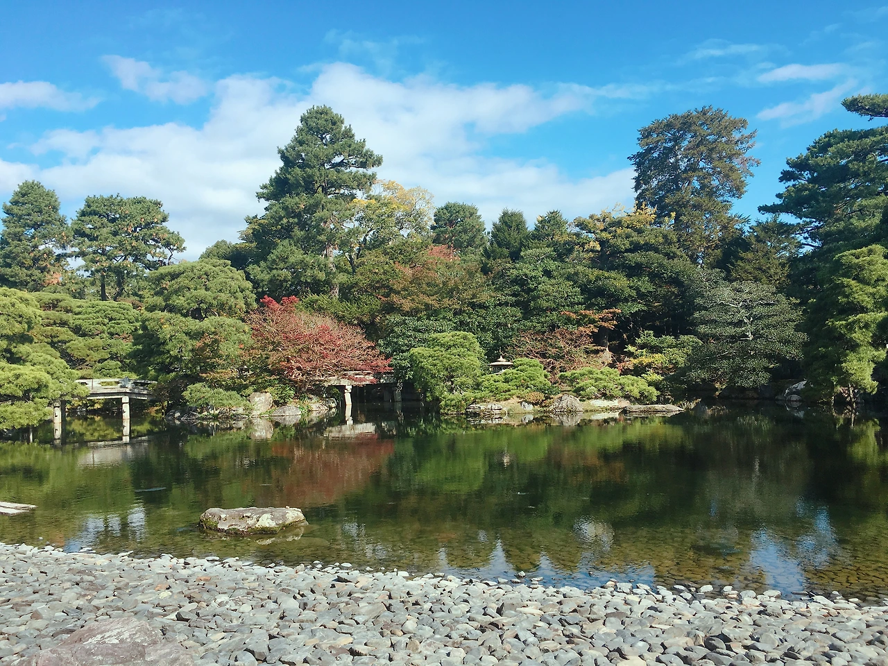 교토고쇼는 일본 천황이 살았던 터를 보존해 놓은 곳이다. 지하철 이마데가와역(今出川駅)을 나오면 바로 보인다. 기간 한정으로 성 내부를 둘러볼 수 있는 관광 코스가 있긴 하지만 굳이 들어가지 않아도 걸을 곳은 많다. 끊임없이 이어지는 자갈밭과 소나무를 지나면 거북이가 사는 연못도 있고 앉아서 쉴 수 있는 벤치도 나온다. 노부부가 그늘에 앉아 샌드위치를 먹는 모습, 유모차를 끌고 나온 젊은 부부의 모습, 나처럼 혼자 걷는 사람들의 모습 등을 볼 수 있다. 볼거리는 없지만 매우 넓기 때문에 사람들과 부딪힐 걱정은 없다. 그래서인지 취준생 시절 이 곳을 많이 찾았다. 면접 준비가 막힐 때도, 당장 내일이 마감일인데 사전 과제가 죽어라 하기 싫을 때도 이곳을 걸었다. 자갈 먼지에 운동화가 회색이 될 때까지 걷다가 소나무를 보고 연못에서 엄마가 좋아하는 거북이 사진을 찍고 있다 보면 집으로 가서 뭐라도 해야겠다는 생각이 들었다. 그 이유는 말로 설명 못하겠는데 이상하게 큰 공원을 한 바퀴 돌고 나서는 의욕이 생겼다.
