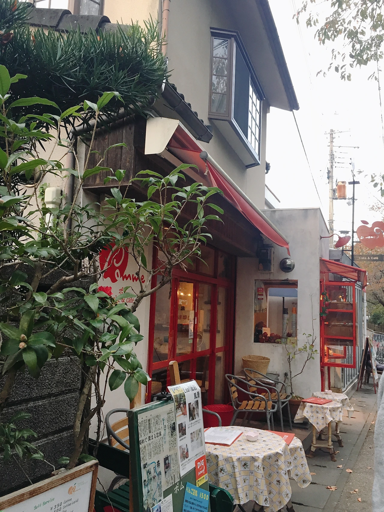 철학의 길에 가면 꼭 들르게 되는 가게가 하나 있다. 할아버지 할머니가 운영하시는 사과 주스, 사과 디저트 가게이다. 가격이 착하지는 않지만 테이크 아웃 사과 주스 한 잔 들고 걷는 게 습관이 되었다. 두 분이서 오순도순 장사하시는 모습을 보는 것도 재미다. 이왕 관광지에 온 거, 녹차 맛 소프트 아이스크림도 먹어 주고 경치 좋은 카페에서 라떼도 마셔준다. 한참 현지인이 아닌 관광객의 기분으로 돌아다니면 신기하게도 마음의 짐이 사라지고 생각이 맑아진다.
