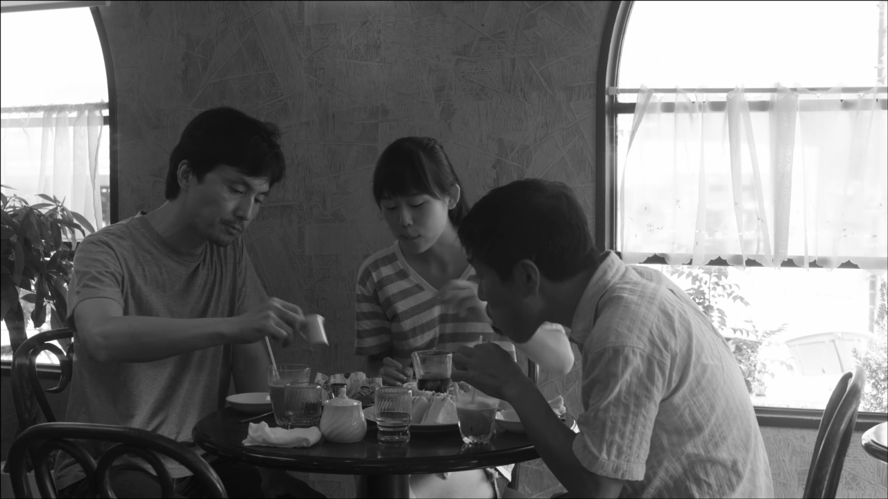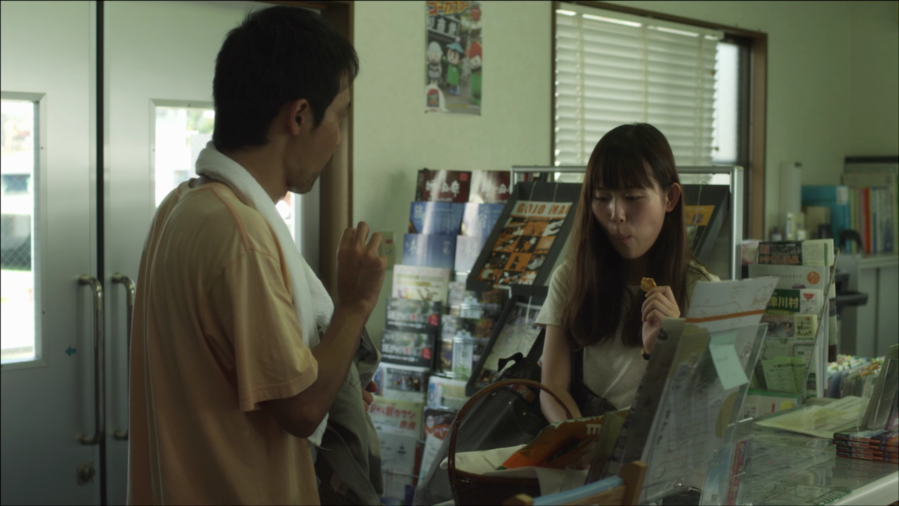 2부 역시 고죠 마을이 배경이지만 이번에는 홀로 여행을 떠난 '혜정'과 관광안내소에서 만난 감 농장 직원 '유스케'가 주인공입니다. 2부는 천 쪼가리를 조각조각 내 서로 요리 붙이고 조리 붙인 퀼트 (quilt) 작품처럼 1부의 내용을 아름답게 재구성하고 있습니다. 같은 듯 다른 듯한 설정과 대사, 행동이 반복되는데요, 어쩌면 2부는 태훈이 답사 후 구상한 영화의 일부가 아닐까라는 생각이 듭니다. 자신을 연기자라고 소개하며 무언가를 찾기 위해 혼자 여행 중이라는 혜정, 회사원보다는 감 만드는 일이 좋아 마을에 남게 되었다는 유스케, 1부에서 등장한 아저씨와 할머니가 유스케의 가족이 아닐까 생각하게 만드는 대사 등에서 알 수 있듯이 두 이야기는 아름답게 얽혀있습니다.