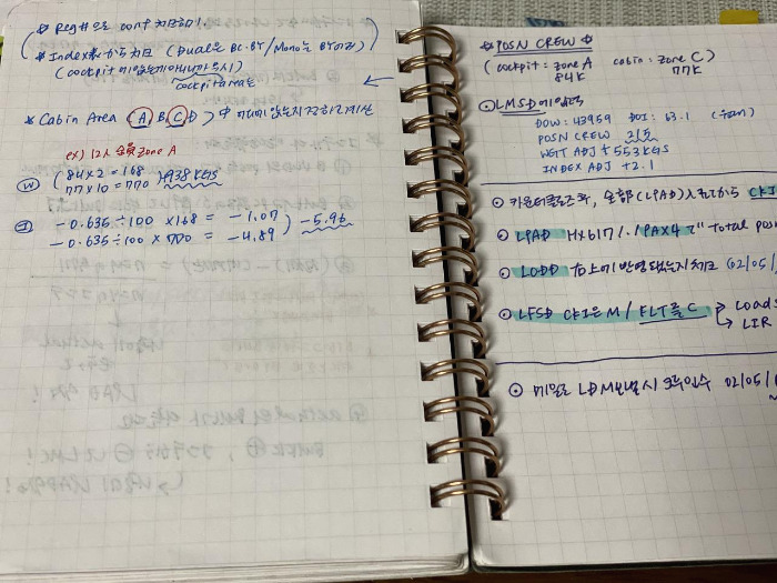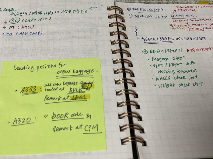 베베 꼬인 시선에 화가 나서 신입 시절에는 미친 듯이 공부만 했습니다. 원래는 대충 일하면서 일찍 끝나는 날에는 영화도 보고 글도 쓰고 다른 회사도 알아보려고 공항에 들어간 거지만, 여객부 대신 운항 관리 부서에 배속된 시점에서 계획은 물 건너간 겁니다. 쉬는 날이면 근무 중 괴발개발 적은 내용을 다시 업무 노트에 옮겨 적었습니다. 일본인들은 이걸 ‘あんちょこ’ (안쵸코)라고 부르는데, 10년 차 선배도 게이트나 카운터로 향할 때는 항상 몸에 지니고 다닙니다. 언제 어떤 이레귤러가 터질지 모르는 게 공항인지라 분신처럼 들고 다니는 겁니다.