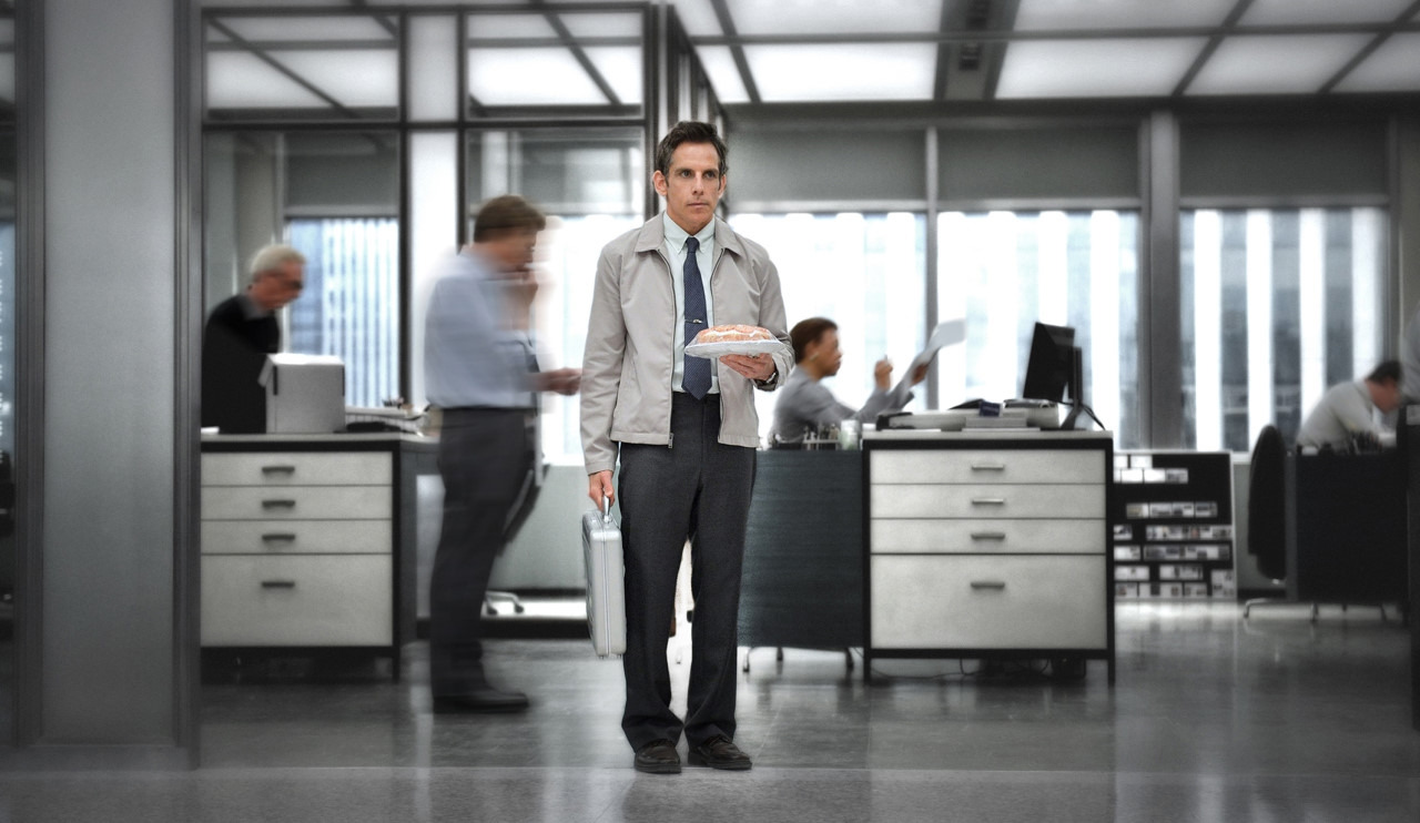 잡지사 <LIFE>의 필름 현상 부서에서 일하는 ‘월터 미티’. 특기는 망상이지만 현실에서는 좋아하는 직장 동료에게 말을 걸 용기조차 없는 소심이입니다. 어릴 적에는 모히칸 머리를 하고 스케이트 대회에서 우승할 정도의 용기가 있는 아이는 자라 데이팅 앱 자기소개란의 ‘특별한 경험’ (Been there Done that) 섹션에 내세울 내용조차 없는 심심한 어른이 되어버렸습니다. 아버지가 주신 여행 수첩이 텅 비어버린 것처럼, 나이가 들어가며 어릴 적 패기는 전부 상상 속으로 묻혀버리고 말았나 봅니다. 상상 속에서 만큼은 세상 제일 멋쟁이이자 블록버스터와 로맨스 영화의 주인공이지만 현실에서는 언제 잘릴지 모르는 직장인의 삶 그 자체를 살아갑니다.