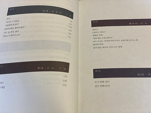 카피라이터 김민철 님의 책에는 그동안 읽고 듣고 보고 배우고, 그리고 쓴 일상의 파편들이 기록되어 있었습니다. 남편과 유럽을 여행하며 자신만의 취향을 만들어 가는 모습이 부러워서였을까요? 아니면 퇴근 후 라틴어를 배우는 모습이 닮고 싶어서였을까요? 저는 카피라이터가 정확히 뭘 하는 직업인지, 카피라이터가 되기 위해서는 어떤 공부를 해야 하는지 모른 채 ‘읽고 보고 느끼는’ 글쟁이가 되었습니다. 김민철 님의 에세이에서 영향을 받은 ‘읽고 보고 느끼는’ 이 구절은 제가 처음 광고 일을 시작한 회사 사원증과 명함에도 새기고 브런치 작가 소개글에서도 유용하게 써먹고 있습니다.