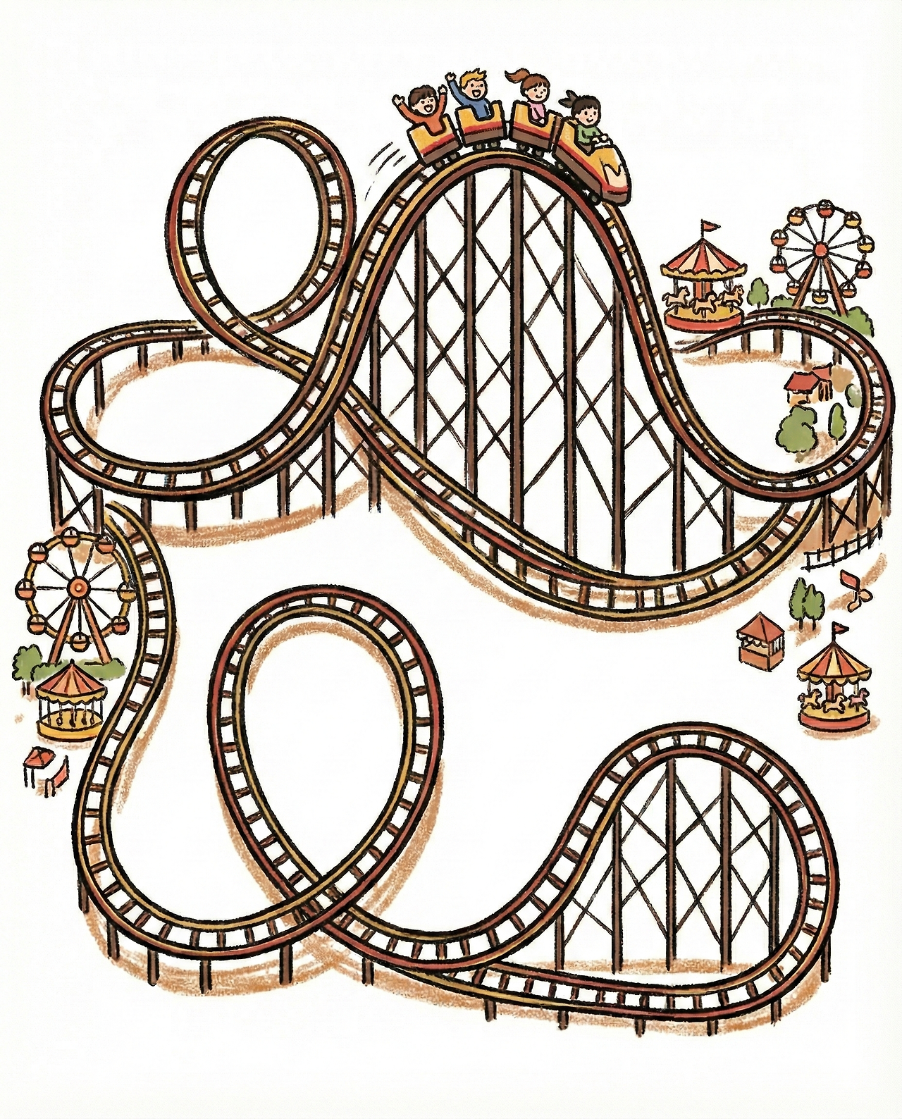 그렇게 한참을 어둠 속에서 헤매다 문득 깨달았다. 이 롤러코스터에서 내리는 비상구는 없다는 것을. 내릴 수 없다면, 방법은 단 하나뿐이다. 이 위에서 멀미하지 않고 버티는 법, 아니 때로는 이 속도감을 즐기는 법을 배우는 것. 나는 그렇게 자세를 고쳐 앉기로 했다.