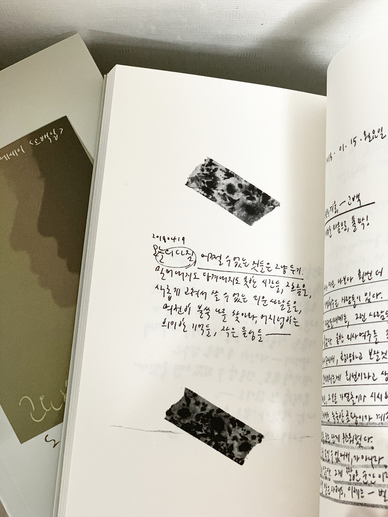 작은 페이지이지만 그 안에는 누구보다도 깊은 고민들이 새겨둔 이야기들이 있습니다. 히든 페이지로는 실제 일기장의 스캔본이 함께 있습니다. (초판에만 있도록 둘진 고민하고 있습니다.) > 책에 대한 리뷰는 인스타그램 #고요한세계에독백을남길때 를 통해 만날 수 있어요.